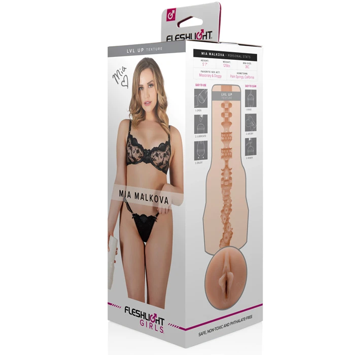 Mia Malkova LVL UP Fleshlight Girls kollektsioonist on valmis täitma kõik sinu fantaasiad. See elutruu masturbaator on valmistatud pehmest ja realistlikust materjalist ning sellel on muljetavaldav sisemine struktuur. See pakub intensiivset stimulatsiooni peenise sisenemisel. Kindel väliskuju tagab hea haarde ja diskreetse välimuse. Eemaldatavat hülssi on lihtne puhastada vee ja mänguasjapuhastusvahendiga. Pornostaari Mia Malkova järgi vormitud realistlik masturbaator meestele, autentsete naudingu seansside jaoks Pärlmutterhõnguline korpus koos imemisseadmega, mis sobib ideaalselt individuaalseks mängimiseks ja diskreetseks hoiustamiseks Temperatuurile reageeriv kanal, mis on vooderdatud naudinguga vooderdatud Lvl Up tekstuuriga, mis pakub erutavaid aistinguid Elutruu vagiina avanemine ja tõelise tunnetusega materjal põnevaks autentsuseks ja fantaasiamänguks