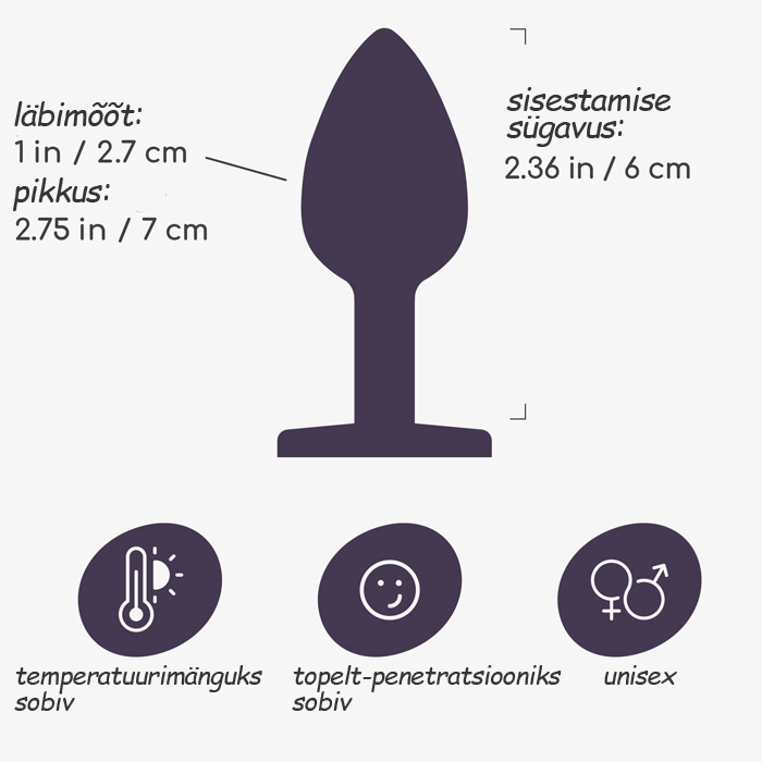 CRUSHIOUS Bijou - see on luksuslik ja elegantne anaaltapp, mis on loodud neile, kes hindavad esteetikat, mugavust ja eksperimenteerimist. Kaunis disain ja sinine kristall muudavad selle tõeliseks ehteks sinu kehale. Sile metallpind tagab uskumatult sujuva libisemise ja muudab tapi ideaalseks temperatuurimängudeks - lihtsalt kasta see sooja või jahedasse vette, et lisada uusi aistinguid. Kuju sobib ideaalselt täiendavaks stimuleerimiseks vaginaalseksi ajal ja sobib nii algajatele kui ka kogenumatele kasutajatele. Kasuta veepõhise libestiga või maksimaalse mugavuse saavutamiseks spetsiaalse anaalse libestiga. Pärast kasutamist piisab pesemisest sooja vee all pehme seebi või spetsiaalse mänguasjade hooldusvahendiga. Sisestamise sügavus: 6 cm. Läbimõõt: 2,7 cm.
