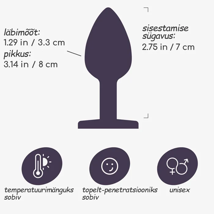 CRUSHIOUS Bijou - see on luksuslik ja elegantne anaaltapp, mis on loodud neile, kes hindavad esteetikat, mugavust ja eksperimenteerimist. Kaunis disain ja sinine kristall muudavad selle tõeliseks ehteks sinu kehale. Sile metallpind tagab uskumatult sujuva libisemise ja muudab tapi ideaalseks temperatuurimängudeks - lihtsalt kasta see sooja või jahedasse vette, et lisada uusi aistinguid. Kuju sobib ideaalselt täiendavaks stimuleerimiseks vaginaalseksi ajal ja sobib nii algajatele kui ka kogenumatele kasutajatele. Kasuta veepõhise libestiga või maksimaalse mugavuse saavutamiseks spetsiaalse anaalse libestiga. Pärast kasutamist piisab pesemisest sooja vee all pehme seebi või spetsiaalse mänguasjade hooldusvahendiga. Sisestamise sügavus: 7 cm. Läbimõõt: 3,3 cm.