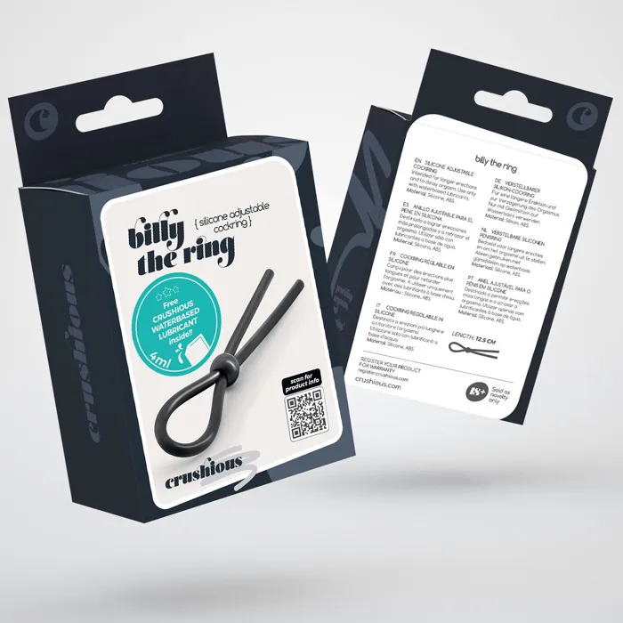 CRUSHIOUS Billy - rohkem kontrolli, rohkem naudingut! Reguleeritav Peeniserõngas CRUSHIOUS Billy aitab hoida erektsiooni tugevana ja pikendada naudingut. Lihtsalt liiguta kuuli, et valida sobiv surve. Valmistatud pehmest ja ohutust silikoonist, mugav ja meeldiv kasutada. Lihtne pesta sooja veega ja seebiga või spetsiaalse mänguasjade puhastusvahendiga. Kasuta ainult veepõhist libestit (komplektis on proovipakk). Kasuta Billy ettevaatlikult ja mõõdukalt. Sagedane või pikaajaline kasutamine võib põhjustada sinikaid või ärritust. Pikkus: 12,5 cm.
