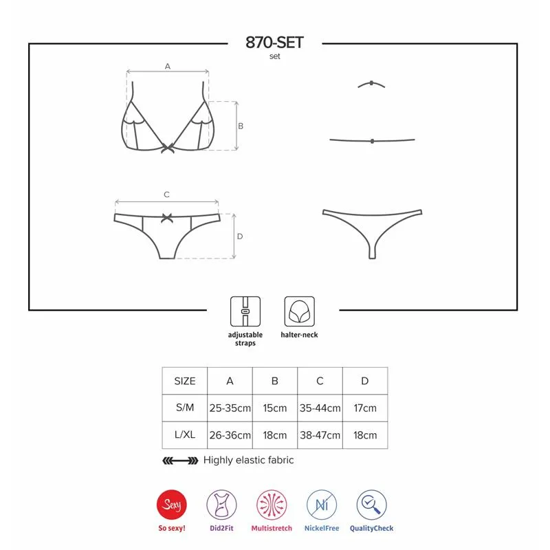 Elav värvilahendus, särav satiin ja pits, mis teid üllatab. Sellel komplektil on poolläbipaistev rinnahoidja ja super sensuaalse pitsiga kaelarihm. Rihmal on ümber talje kaunistused, mis kallistavad ja hellitavad teid. Elemendid: Kaelarihm Poolläbipaistev Täiuslik sobivus garanteeritud, pehme ja elastne kangas Materjal: 94% polüamiid, 5% elastaan.
