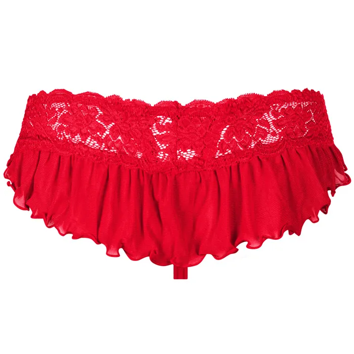 Imeilus pits ja ahvatlevad sitsid teie tuharatel? Kõlab... fantastiliselt! Nüüd proovi, kuidas see tundub. Oled valmis? Just sinu jaoks valmistatud uskumatult kuumad stringid on siin. Olgu need sinu jalas seksikad ja toogu need välja sinu naiselikud võlud! Kõik vapustavad detailid: jumalikud, punased stringid õrn võrk ja imeilus pits võluv sits stringide tagaküljel - osaliselt kaetud tuharad - uskumatult seksikas välimus! sitsid rõhutavad naiselikke kumerusi kvaliteetne materjal (90% polüamiid, 10% elastaan)