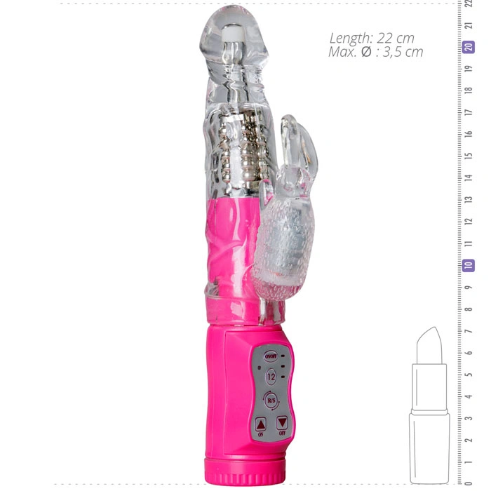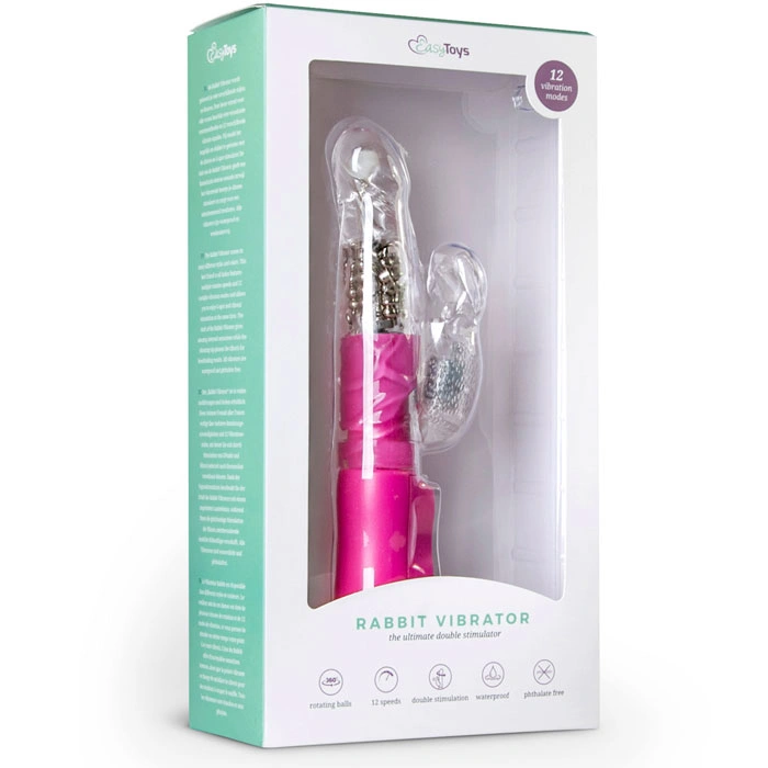 Vibraatoril EasyToys Rabbit on mitu pöörlemiskiirust ja 12 erinevat vibratsiooni režiimi ning see võimaldab sul nautida samaaegset G-punkti ja kliitori stimulatsiooni. Vibraatori vars pakub uskumatuid sisemisi sensatsioone, samal ajal kui vibreeriv jänku rahuldab kliitorit hingematvalt. - Kehale ohutud materjal (ftalaatideta) - 12 erinevat vibratsiooni režiimi - Veekindel: jah - Libesti: veebaasil, silikooni baasil - Läbimõõt min.: 2.50 cm. - Läbimõõt max.: 3.50 cm. - Sisestamise sügavus: 11.50 cm. - Pikkus: 22 cm. - Materjal: TPR - Kaal: 291 gr. - Patareid: 3x AAA