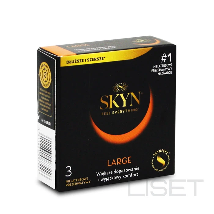 SKYN King Size (Large) uue põlvkonna kondoomid on valmistatud Skynfeel-st, tehnoloogiliselt arenenud lateksmaterjalist, millel on stimuleeriv toime. See tundub nii pehme ja mugav, et selle kandmine on vaevumärgatav. Nii saad nii sina kui ka su partner tunda igat pisemat puudutust. Ideaalne sobivus Eriti tõhus libesti (mitte spermitsiidne) Mõnus tekstuur Loomulikku värvi Antud toode ei sisalda looduslikku kummilateksit ja on sobiv valik inimestele, kellel on teadaolev või võimalik allergia loodusliku kummilateksti suhtes.
