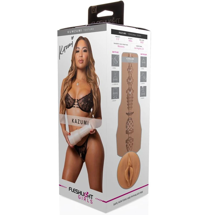 Hellita ennast Kazumi Kumzumiga, kes on kuulsa pornotähe järgi modelleeritud veetlev Fleshlight. Fleshlight Girls seeria on tuntud oma diskreetse disaini poolest, mis vastab oma nimele. Eemaldatav detail on valmistatud SuperSkinist, kehakindlast silikoonist, mis tundub uskumatult pehme ja mugav. Oluline eelis on see, et see materjal saavutab kiiresti kehatemperatuuri. Sisemine osa on tekstureeritud muhkude ja soonikutega, pakkudes mitmekesist stimulatsiooni. Soovitud vaakumitaset saad reguleerida tagumise korgi abil. Üldine kombinatsioon pakub väga realistlikku ja intensiivset tunnet, tagades meeldiva kogemuse. Ava on paindlik ja kohandub täielikult sinu peenise suurusega. Plastist korpus tagab masturbaatori kindla haardumise. Hülsi puhastamine on lihtne, mistõttu on Kazumi Kumzumi Fleshlight ideaalne mänguasi lõputuks naudinguks. Kasuta veepõhist libestit.