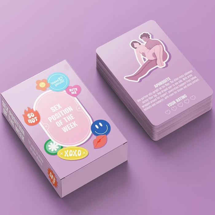 Tease & Please Sex Position Of The Week on mänguline kaardimäng, mis on loodud selleks, et lisada vaheldust, uudishimu ja põnevust intiimsetesse hetkedesse. Selle asemel, et langeda tagasi samade harjumuste juurde, kutsub see mäng sind üles uurima koos uusi ideid ja muutma intiimsust igapäevaseks. Mäng sisaldab 52 kaarti, millest igaühel on unikaalne positsioon, millele keskenduda ühe terve nädala jooksul. Alates õrnast ja tuttavast kuni julgema ja ergutavamani, pakub iga kaart uut võimalust üksteise kogemiseks. See loob rütmi, kus soov, üllatus ja tähelepanu saavad loomulikult kokku. Nädala seksiasend ei ole reeglite või sooritussurve, vaid mängulise inspiratsiooni teemaks. Valige kaart, tehke see oma hetkeks ja laske kõigel loomulikult areneda. Kaardid julgustavad kujutlusvõimet ja suhtlemist, võimaldades teil oma mugavustsoonist välja astuda lõdvestunult ja oma tempo järgi. See kaardimäng sobib ideaalselt paaridele, kes soovivad süvendada intiimsust, luua ootusi ja nautida koos avastamist. Tease & Please Sex Position Of The Week muudab intiimsuse korduvaks rituaaliks, mis on täis ühendust, põnevust ja naudingut.