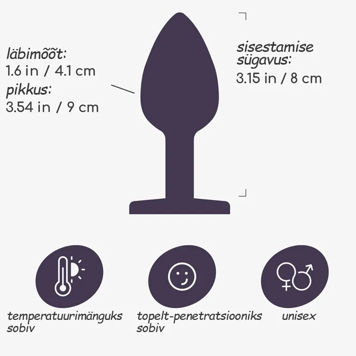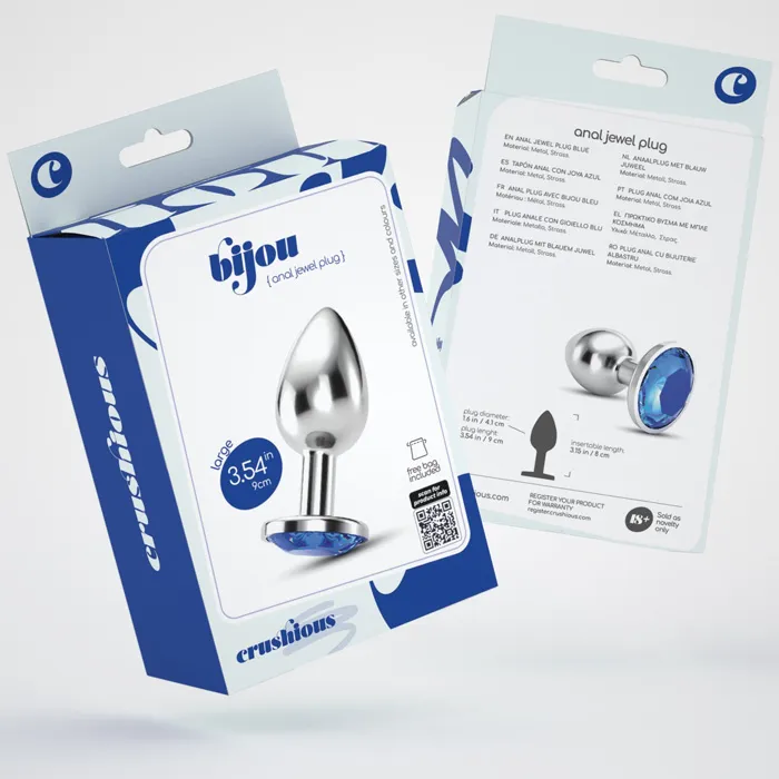 CRUSHIOUS Bijou - see on luksuslik ja elegantne anaaltapp, mis on loodud neile, kes hindavad esteetikat, mugavust ja eksperimenteerimist. Kaunis disain ja sinine kristall muudavad selle tõeliseks ehteks sinu kehale. Sile metallpind tagab uskumatult sujuva libisemise ja muudab tapi ideaalseks temperatuurimängudeks - lihtsalt kasta see sooja või jahedasse vette, et lisada uusi aistinguid. Kuju sobib ideaalselt täiendavaks stimuleerimiseks vaginaalseksi ajal ja sobib nii algajatele kui ka kogenumatele kasutajatele. Kasuta veepõhise libestiga või maksimaalse mugavuse saavutamiseks spetsiaalse anaalse libestiga. Pärast kasutamist piisab pesemisest sooja vee all pehme seebi või spetsiaalse mänguasjade hooldusvahendiga. Sisestamise sügavus: 8 cm. Läbimõõt: 4,1 cm.