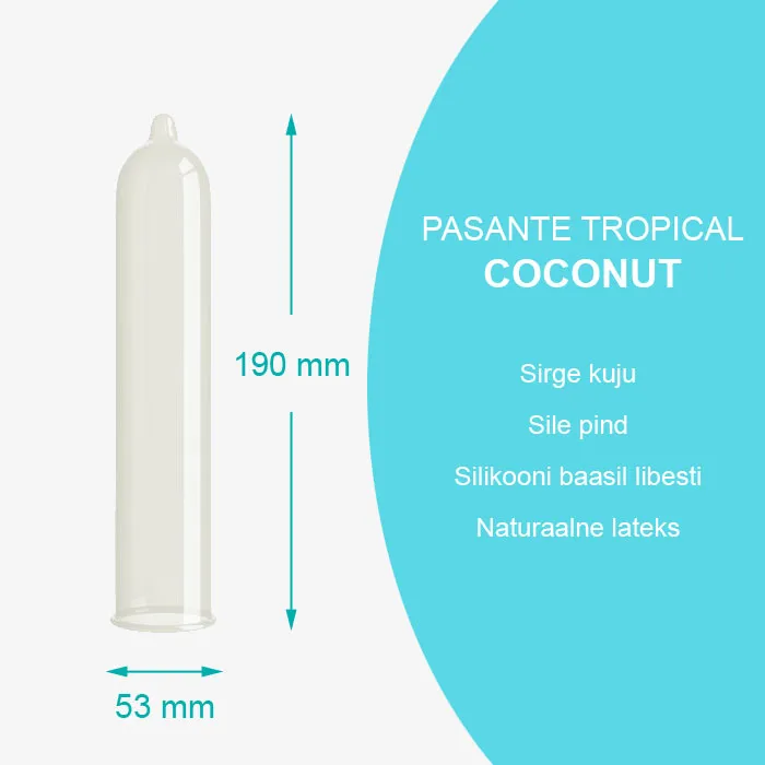 Pehme ja õrn kookose maitse loob troopilise saare atmosfääri ning lisab romantikat ja lõõgastust. Naturaalne lateks Silikoonlibesti Kookose maitse Naturaalne värv Sirge kuju Sile pind